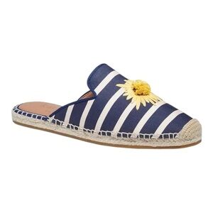 KATE SPADE Solero Mules Striped Espadrilles Yellow Flower Size 9.5 NWOT