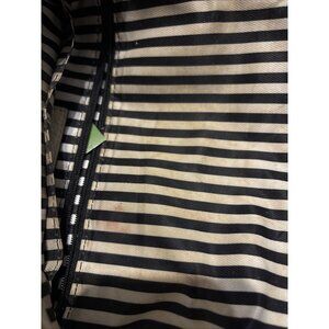 This Kate Spade Southport Ave Maria crossbody bag features a tan and black colorblock design with gold hardware accents. The leather bag has a zip closure, fabric lining with multicolor pattern, and a detachable crossbody strap. It includes inner pockets and has a strap drop of 20 inches. The bag comes with a care book.