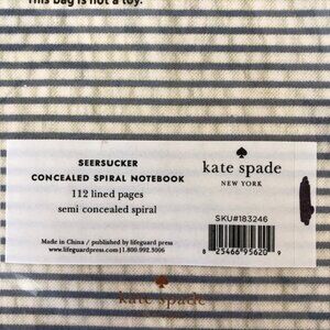 Hardcover notebook is featured in the trendy seesucker print with the kate spade new york logo printed on the backside.