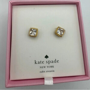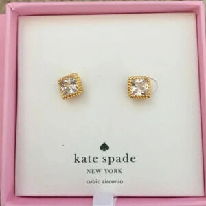 KATE SPADE Square Solitaire Crystals Gold-Tone Metal Hardware Earrings Boxed NWT