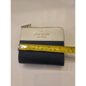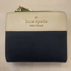 KATE SPADE Staci Colorblock Navy/Kelly Green Small L-Zip Bifold Wallet NWOT