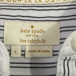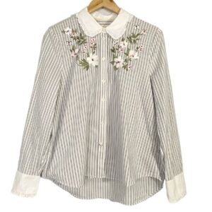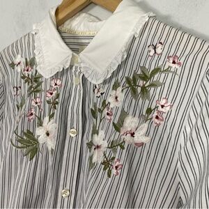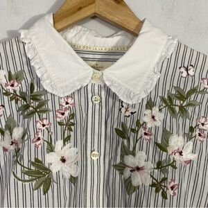 KATE SPADE Stripe Ruffle Floral Embroidered Button Down Shirt