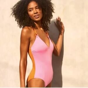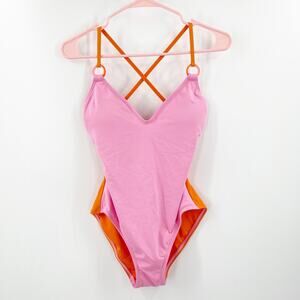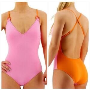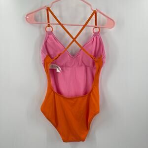 KATE SPADE Swimsuit SZ Small NEW Plunging V-Neck One Piece Orange Surf Pink NWOT