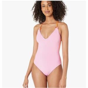 KATE SPADE Swimsuit Size Small NEW Plunging V-Neck One Piece Orange Surf Pink NWOT