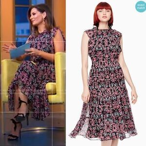 KATE SPADE Tapestry Silk Chiffon Ruffle Midi Dress Size Small 4/6