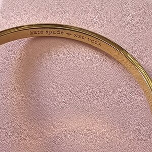 Chic gold-tone with white enamel band bangle bracelet from Kate Spade. On the inside "TICKLE THE IVORIES" is engraved , from her collection. Circumference from the outside is 8".Pre-owned with minamal signs of wear. Comes with a pink pouch & box