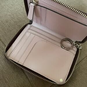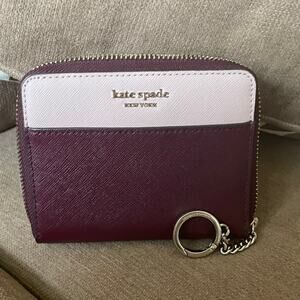 KATE SPADE WALLET ZIP AROUND PINK/MAROON KEY CHAIN VERSATILE AESTHETIC