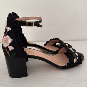 KATE SPADE Wayne Black Floral Open Toe Ruffle Embroidered Dress Sandals Size 8
