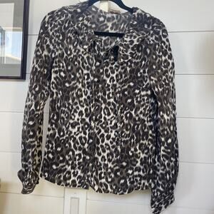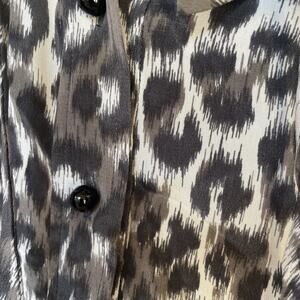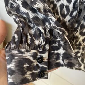 KATE SPADE White Gray Black Cheetah Print Silk Ruffled Tie Neck Button Shirt 4