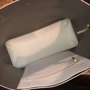 KATE SPADE Silver Glitter Polka Dot White Leather Oversized Tote Shoulder Bag