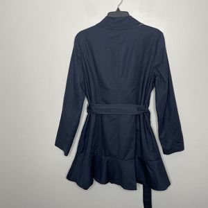 KATE SPADE Womens Blue Button-Front Ruffle-Trim Coat Medium M Lined Cotton-Blend