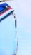 Chic wristlet with bold stripes. Features a wrist strap, blue lining, and secure zip closure.