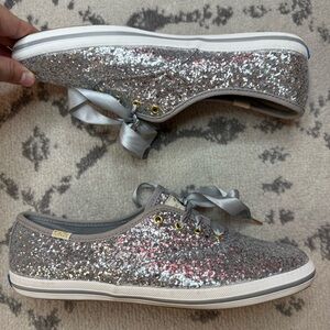 KATE SPADE X KEDS Silver Glitter Satin Lace Up Sneakers