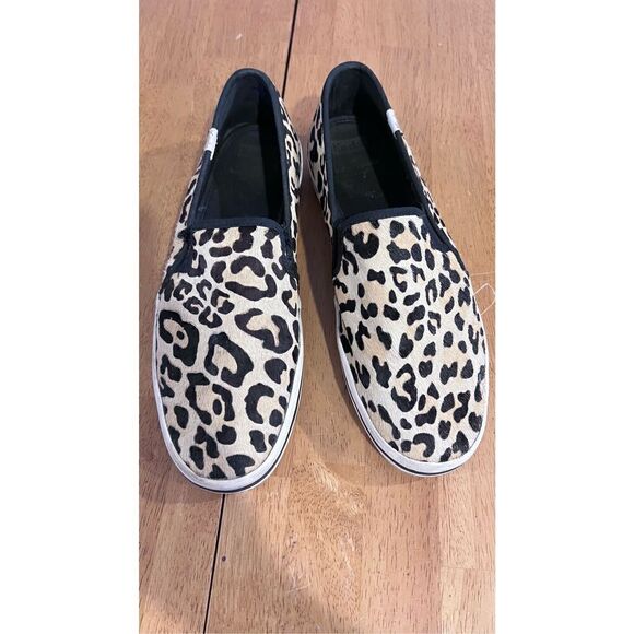 KATE SPADE X KEDS WOMENS LEOPARD PRINT CALF HAIR SLIP ONS SIZE 9.5