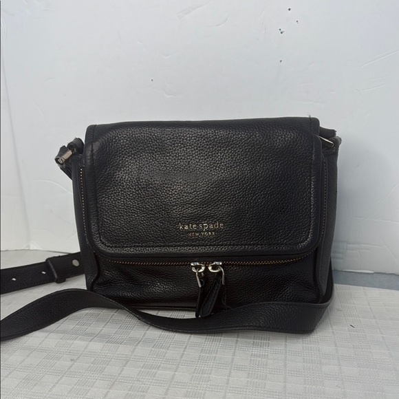 KATE SPADE Zip Flap Jackson Leather Crossbody Bag Black