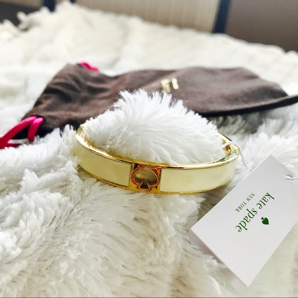 Brand-new. Authentic Kate Spade "hole punch spade" in cream. 14 karat gold fill. This is a beautiful statement bracelet. Comes with tags, dust bag and gift box.