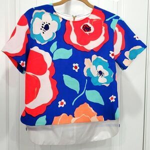 KATE SPADE blue floral Ramona short sleeve top , Size 4
