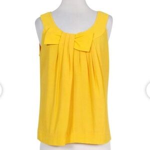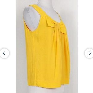 Super cute dainty tank top in a bright sunshine yellow! Pleated lightweight 100% viscose with a signature bow detail asymmetrical off scoop neckline. Fully lined with hidden bra strap secures.