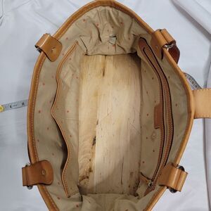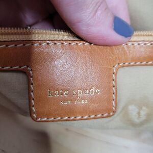 Kate Spade New York leather trim wood bottom orange sherbet raffia shoulder bag purse. Some minor areas of wear including the inside of the purse, all shown in photos. Very unique bag with a fully wooden bottom.