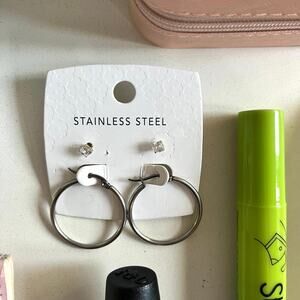 7. Earrings: 2 pairs!! Sterling silver hoops & faux diamond studs w/ gold hardware