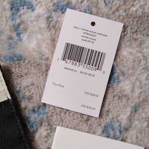The KATE SPADE x DISNEY Minnie Mouse Small Wallet Card Case Holder in Black/White/Red is a chic and playful accessory for women who love Disney and classic style. Featuring a faux leather exterior with a black and white color scheme, this card case holder is adorned with Minnie Mouse imagery in red accents. The compact size makes it perfect for on-the-go use, while the white lining adds a touch of sophistication. The collaboration between Kate Spade and Disney brings a unique and charming concept to this stylish product.