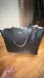 Chic black tote with scalloped top edges. Includes matching wallet. Ideal for daily use. Has 4-feet, zip top closure, gold hardware, both in excellent new with tags condition. Very giftable.