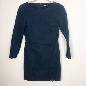 Adorable dark blue mini dress by Kate Spade Saturday. Long sleeves with zippers on the back of each cuff. Two zippers on the front diagonal of the skirt. Zipper back closure. Two seams on the front sides at the waist need to be resewn - see pics. Otherwise good preowned condition. Womens size 2.