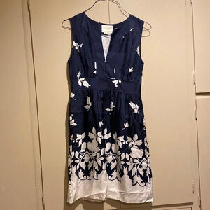 KATE SPADE Silk Dress Navy Blue White Floral 4 Silk V-Neck Lace Lining Dress