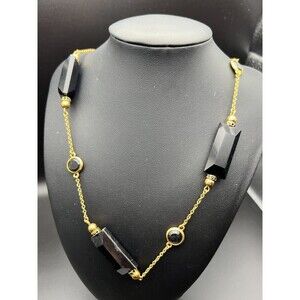 Versatile long station necklace by Kate Spade. Black stones—long bars and round bezel set.