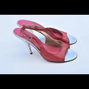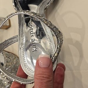 KATE Spade Glitter Miya Silver Cinderella 8 Sandals Heels Rhinestone Shoes NEW