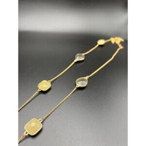 Bright gold-plate Kate Spade station necklace with olive and lemon-lime stones.
