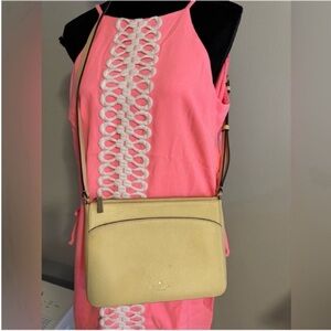 Kate's Spade this fabulous crossbody handbag with adjustable strap arrives to you in good gently enjoyed condition. See photos for measurements, and Please contact us with questions.