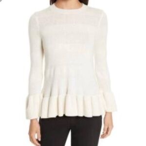Cream or ivory cashmere, wool, and acrylic blend shadow stripe sweater, size small from Kate Spade.