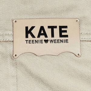 KATE Teenie Weenie Overall Dress Womens Small Tan Denim Palm Trees Pineapple Embroidered
