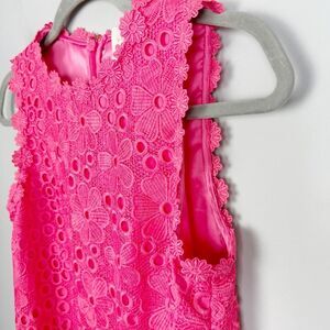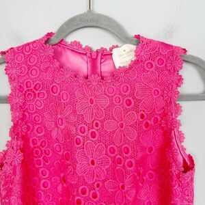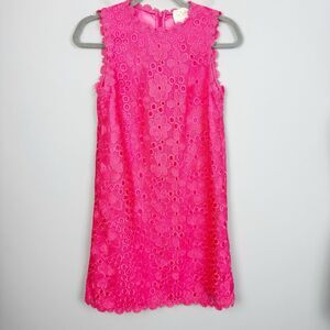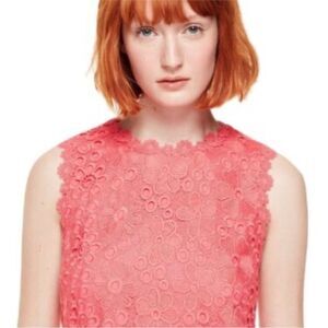 Beautiful bright pink sherbet shift dress by Kate Spade NY. Sleeveless. Higher neckline. Lace overlay. Lined. Back zipper and clasp closure. Great preowned condition. Women’s size 0.