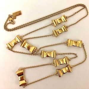 KATE SPADE Gold Tone & Gold Enamel Bow 32” Necklace
