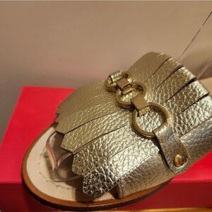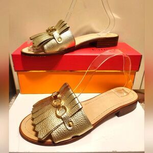 KATE SPADE NEW YORK Brie Kiltie Gold Leather Slide Sandals Sz.8.5 Ret$399 in Box