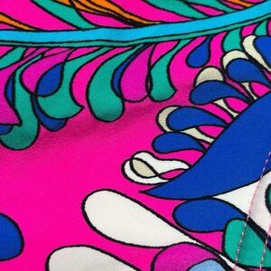 Vibrant bikini set featuring a colorful pattern with pink accents. Perfect for a stylish beach day.