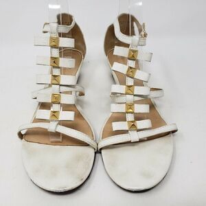 KATE SPADE WHITE GOLD STRAPPY STUDDED SANDALS 9 M