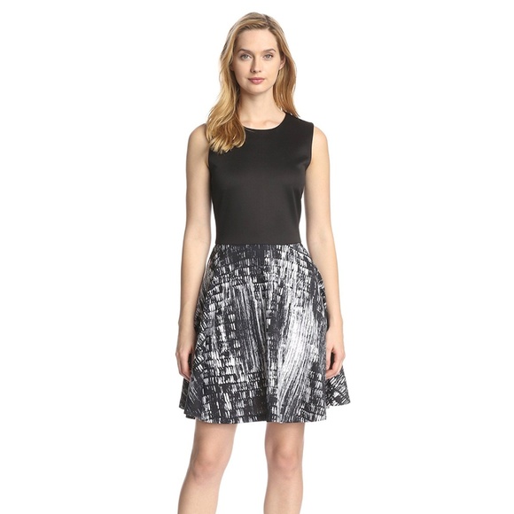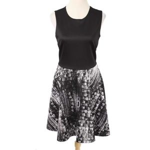 New with tags Katherine Barclay Cally abstract print fit & flare sleeveless dress. Black top & black & white pattern skirt. Scuba-like neoprene material. Hidden back zipper.