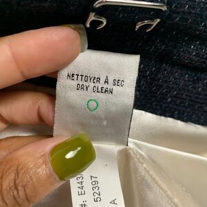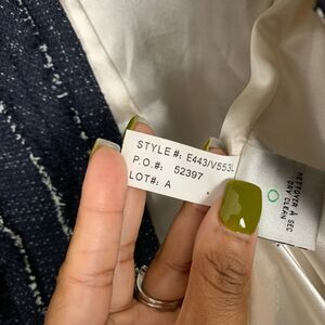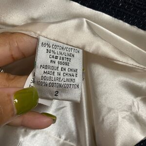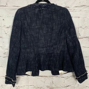 KATHERINE BARCLAY Navy Blue Tweed Cotton Linen Lined Blazer Jacket Size 2 Chic
