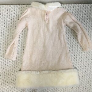 KATHERINE MALANDRINO SWEATER DRESS CREAM WITH FOUX FUR TRIM SIZE 4T