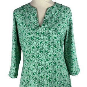 KATHERINE WAY Green & White Tunic Dress Size XS