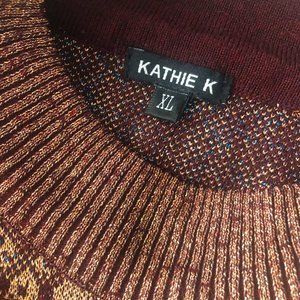 KATHIE K Wool Blend Auburn Multi Color Metallic Thread Sweater Excellent Size XL