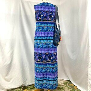 vintage 90s kathie lee collection purple and blue floral tropical hawaiian print sleeveless maxi shift dress, size medium