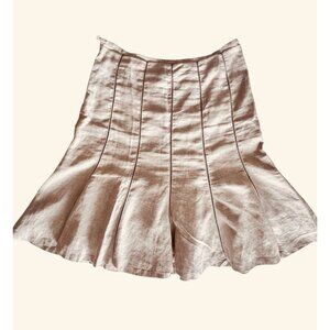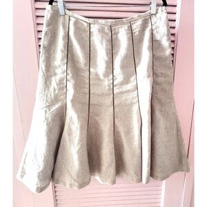 KATHRINE BARCLAY Skirt Sz 12 100% Linen Fully Lined Gore Skater Beige Flared
