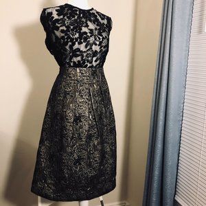 KATHY COLE Black and Gold Embossed Pattern Brocade Skirt Size 10