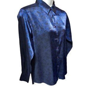 KATHY IRELAND Deep Royal blue Floral Print Long Sleeve Blouse Size Large