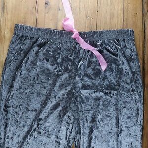 KATHY IRELAND GREY LIGHTWEIGHT VELVET PAJAMA PANTS WITH PINK DRAWSTRING SIZE M