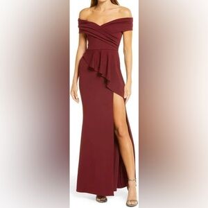 KATIE MAY Hit the Mark Gown in burgundy. Size Small